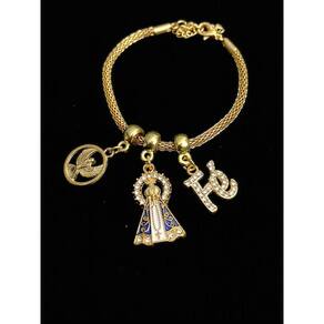 Pulseira Sra. Aparecida, Espírito Santo E Fé Banhada A Ouro