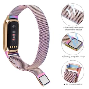 - ?Material confortável?Estas pulseiras Fitbit Luxe são feitas de malha moderna de aço inoxidável. O design de malha torna esta pulseira mais respirável e leve. Traz a você uma experiência de uso elegante e confortável, personalize seu relógio. Muito macia e confortável de usar.