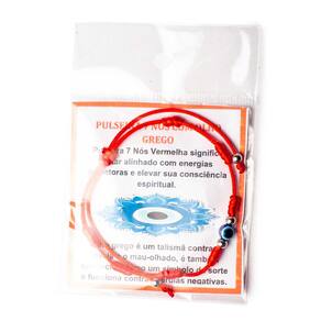 Pulseira Vermelha 7 Nós com Olho Grego - Amuleto de Proteção e Energia PositivaAjustável – Proteja sua Energia com Força e Espiritualidade A Pulseira Vermelha 7 Nós com Olho Grego é um poderoso amuleto de proteção, criado para afastar energias negativas e atrair boas vibrações. Com uma combinação de simbolismo ancestral e um design discreto, esta pulseira é perfeita para quem busca sorte, equilíbrio espiritual e segurança energética no dia a dia. Principais Benefícios:\nProteção Espiritual: Os sete nós representam a proteção em todas as fases da vida, criando um escudo energético contra influências indesejadas, como o mau-olhado e inveja.\nSorte e Positividade: Tradicionalmente usada para atrair boa sorte e harmonia, sendo um amuleto altamente simbólico em diversas culturas e práticas esotéricas.\nForça e Coragem: O cordão vermelho ativa a energia vital, fortalecendo a autoconfiança e o foco para superação de desafios.\nAjuste Personalizado: Com fecho deslizante, a pulseira se adapta perfeitamente ao seu pulso, oferecendo conforto e segurança no uso diário.\nDetalhes do Produto:\nTipo: Pulseira de proteção com 7 nós e Olho Grego\nMaterial: Cordão vermelho de alta resistência e bolinha metálica (0,4 cm de espessura)\nTamanho: Ajustável – de 16 cm a 24 cm (aproximadamente)\nPeso: Leve, confortável para o uso contínuo\nMontagem: Feita artesanalmente com fecho ajustável manual\nOrigem: Produção artesanal nacional\n Observações Importantes:Por ser um produto artesanal, variações no acabamento e nos nós podem ocorrer, tornando cada peça única. Para garantir maior durabilidade, evite o contato direto com a água. Marca: Não Informado