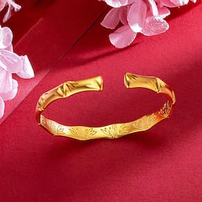 Material: Design inspirado em bambu dourado — esculpida com nós segmentados e padrões de folhas de bambu, esta pulseira simboliza força, graça e harmonia natural na cultura asiática. Acabamento Gold Placer — Feita de liga de cobre com revestimento dourado, a pulseira oferece um brilho fosco luxuoso com excelente resistência ao desgaste. Manguito aberto confortável — apresenta um design aberto para fácil ajuste e ajuste seguro, adequado para a maioria dos tamanhos de pulso sem desconforto. Artesanato refinado — Gravuras detalhadas e uma silhueta esculpida mostram artesanato de alta qualidade, combinando estilo tradicional com minimalismo moderno. Perfeito para uso diário e formal — Ideal para casamentos, celebrações culturais ou looks elevados do dia a dia, trazendo um toque de sofisticação e significado simbólico.