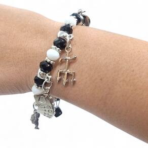Com design discreto e cheio de significado, a pulseira une estilo, fé e propósito, podendo ser usada como proteção constante no pulso.