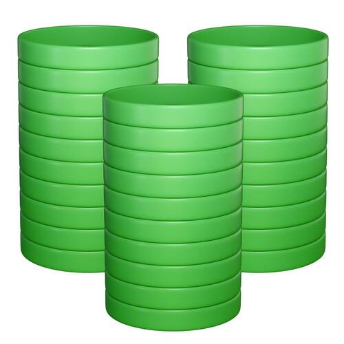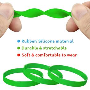 Especificação Material: silicone/borracha Cor: verde Tamanho medido: diâmetro 6,5 cm, largura 12 mm Quantidade: 100 peças Observação: a cor do produto recebido pode variar ligeiramente devido a diferenças de resolução. - O pacote inclui: 100 pulseiras de silicone verde - Materiais de qualidade: Feito de material de silicone de boa qualidade que é elástico e macio ao toque - Tamanho: aprox. 6,5 cm de diâmetro e 1,2 cm de largura, adequado para adolescentes e adultos - Amplas aplicações: estas pulseiras de borracha coloridas são perfeitas para várias ocasiões, como festas, eventos esportivos e identificação do time - Presente ideal: Estas pulseiras em branco podem ser usadas como lembranças especiais, brindes de festa, brinquedos para gatos, enchimentos de sacolas de brindes ou decorações de festa para seus filhos, amigos, familiares e equipes