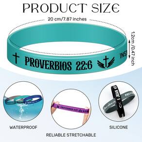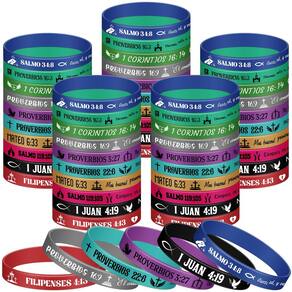 Cada pulseira de silicone cristão exibe palavras e versículos inspiradores da Bíblia espanhola. Projetadas para elevar seu bem-estar emocional, elas promovem uma mentalidade positiva. Use-as, sinta o fluxo de motivação dentro de você e abrace a força em sua fé.