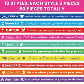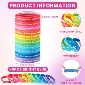 60 pulseiras de borracha motivacionais em versículo bíblico espanhol.