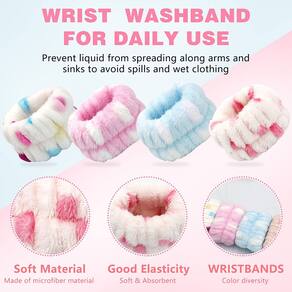 - Forte praticidade: a faixa de toalha de lavagem de pulso pode manter seu braço seco quando você lavar o rosto e trazer uma boa experiência. As faixas de pulso evitarão que líquidos se espalhem pelos braços, pelo topo da pia