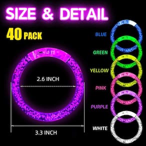 - 🌈?Pulseiras coloridas que brilham no escuro?40 unidades de pulseiras LED que brilham no escuro estão disponíveis em 6 cores diferentes: roxo, rosa, transparente, amarelo, verde e azul. Cada pulseira vem com luzes LED especiais e brilha em um ritmo, um apelo visual divertido e a difusão da luz pelas bolhas internas também proporcionará uma experiência visual extraordinária. Usando esses equipamentos inovadores, você está imerso em uma atmosfera romântica, sonhadora e apaixonada em suprimentos para festas noturnas