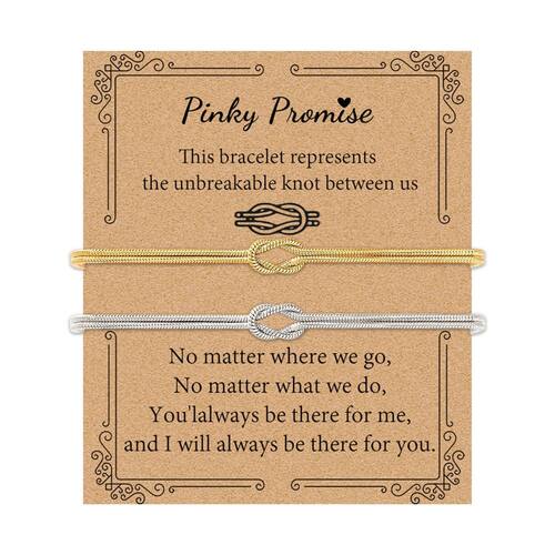 - Pulseira de promessa de ouro e prata: um nó delicado está no coração desta pulseira, simbolizando conexão, confiança e as promessas que cumprimos. Um doce lembrete do vínculo que você compartilha com alguém especial
