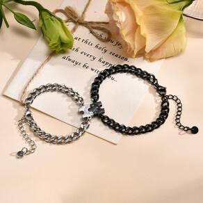 - Material: Feito de aço inoxidável de alta qualidade, proporcionando durabilidade, resistência a manchas e uma estética moderna elegante. Projetado em um padrão de elos de corrente elegante, dando às pulseiras um visual contemporâneo e moderno, adequado para uso diário ou ocasiões especiais. Pulseira preta projetada para homens com um apelo ousado e masculino, enquanto a pulseira de prata feita sob medida para mulheres apresenta um design elegante e refinado.