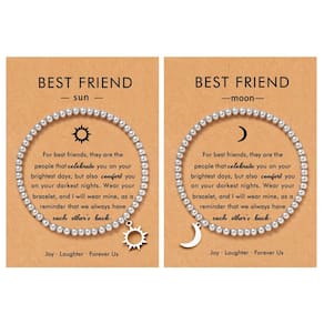 - ?Melhor amigo?Para melhores amigos, eles são as pessoas que celebram você em seus dias mais brilhantes, mas também o confortam em suas noites mais escuras. Use sua pulseira, e eu usarei a minha, como um lembrete de que sempre temos de volta um ao outro.