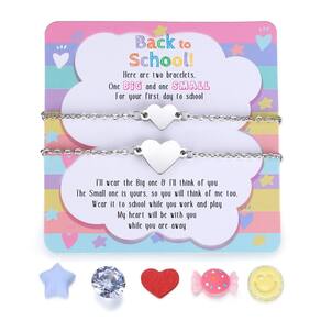 - Presentes doces de volta às aulas: Esta pulseira de coração combinando trará uma imensa quantidade de conforto para sua filha no primeiro dia de aula. Depois que ela abrir o presente e ler a nota no cartão colorido doce, explique como funciona: no primeiro dia de aula, vocês dois usarão as pulseiras da sua mãe e filha. Na escola, quando ela está se sentindo nervosa ou com medo, ela pode tocar sua pulseira mágica e pensar em você, sabendo que você está usando o gêmeo e fazendo o mesmo.