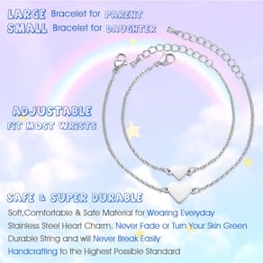 - Seguro de usar: Tamanho da pulseira ajustável: extensor de 17 cm + 3,35 polegadas (a pulseira grande para a mamãe), extensor de 15,5 cm + 3,4 cm (o pequeno para a filha). Cada pulseira de promessa mindinho é feita usando aço inoxidável premium para uma vida longa. É hipoalergênico, antimanchas e seguro de usar. Anéis abertos soldados para garantir que o pingente do coração não caia ou se perca facilmente. Espelho polido para dar brilho, aparência delicada e fofa. Suave e confortável para uso diário e receber elogios.