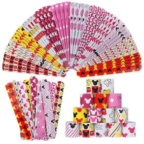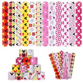 - O pacote inclui 48 pulseiras de tapa com tema Mickey e Minnie em 12 padrões diferentes, cada padrão para 4 peças.
