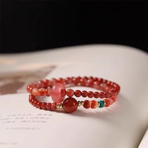 Material: design de laço duplo de ágata vermelha do sul para elegância em camadas — apresenta uma elegante construção dupla que adiciona dimensão e elegância, ideal para empilhar com outras pulseiras. Miçangas naturais de ágata vermelha do sul — miçangas cuidadosamente polidas exibem os tons únicos de vermelho profundo da ágata vermelha do sul natural, valorizada por sua beleza e energia. Acentuado com turquesa e cristal — Inclui miçangas decorativas em tons de turquesa e cristal transparente para um contraste moderno e vibrante. Ajuste flexível e confortável — O cordão elástico garante que a pulseira se adapte facilmente a diferentes tamanhos de pulso, mantendo a durabilidade e elasticidade. Versátil para qualquer ocasião — Seja para energia espiritual, elegância diária ou roupas de rua modernas, esta pulseira complementa uma grande variedade de estilos.