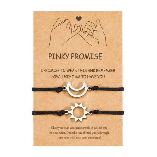 - Pulseiras Pinky Promise – Lembre-se sempre, caminhamos sob o mesmo sol e dormimos sob a mesma lua. Sentindo-se juntos, não importa onde você esteja e não importa o quão longe com você, prometo usar esta pulseira de sol da lua e lembrar como sou sortudo por ter você. Esta é a nossa promessa mindinho.