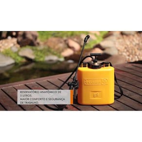 Os pulverizadores de alta pressão Brudden são produzidos exclusivamente com câmara de latão, que garante maior pressão com menor esforço do usuário no ato da pulverização, além de assegurar maior durabilidade contra corrosões de produtos químicos. Exclusividade Brudden, a câmara de latão proporciona pressão máxima de até 200 lbf/pol². Indicado para pulverizações em áreas agrícolas, horticulturas, viveiros de mudas, plantações de pequeno e médio porte, pulverização de animais, aplicações de carrapaticidas, herbicidas, fungicidas e inseticidas, ente outros. Equipamento projetado com design ergonômico, cinta regulável e capacidade para 05 litros, que proporciona ao usuário maior conforto e leveza. Reservatório em polietileno de alta densidade, que garantem maior resistência a impactos e corrosões. Possui gatilho de acionamento suave e de fácil manuseio, permitindo manter uma pulverização constante e uniforme Seu bico cone regulável proporciona uma excelente névoa de pulverização sem gotejamento, evitando a perda de produto químico. Câmara de latão. Bocal: 60 mm; comprimento da lança:300 mm; comprimento da mangueira:1000 mm; bico instalado: cone regulável; bomba: pressão: 100 a 200 lbf/pol2.
