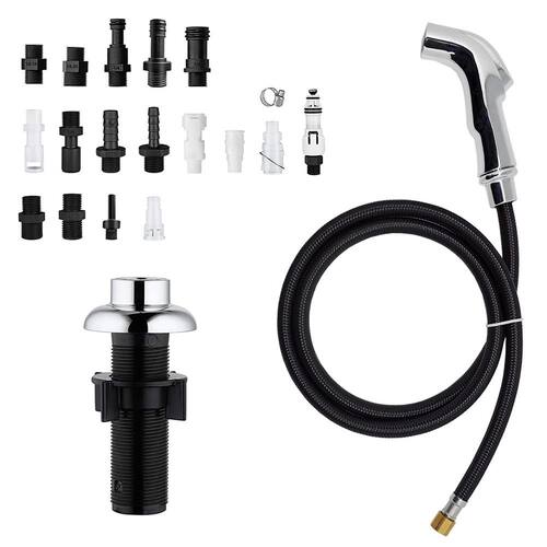 Pulverizador de cozinha cromado, pulverizador de torneira de cozinha, pulverizador lateral de pia de cozinha com cabeça de pulverização e mangueira, acessório de pulverizador de pia de cozinha, spray - ? 17 adaptadores extras disponíveis, que atenderão aos requisitos de 99,99% no mercado dos EUA. - ? Pulverizador de cozinha de qualidade premium – Produzido por um fabricante de classe mundial. Estrutura de plástico ABS durável com proteção resistente a arranhões e manchas para cabeças e suportes de pulverizador de cozinha, passou no teste de pulverização de sal. - ? Fácil de usar – a ação do gatilho aplicada no polegar é fácil de lavar pratos gordurosos e oferece pulverização de energia direcional de alta pressão. Cabeça de pulverização fácil de limpar que evita o acúmulo de minerais. - ? Acabamento de superfície – Feito de plástico ABS (ABS de grau de engenharia), garantindo qualidade e longevidade. Os acabamentos suaves resistem a arranhões, corrosão e manchas. - ? Bom atendimento ao cliente - responderemos dentro de 8 horas após receber seu e-mail e oferecemos devoluções de 30 dias e manutenção de 1 ano.