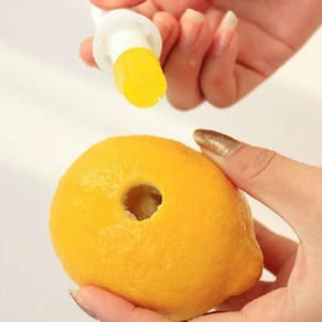 Modo de uso: Insira o spray na fruta e basta borrifar o suco diretamente na comida, sem precisar cortar e espremer. Fácil, Prático e Higiênico.