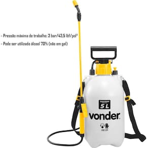 Indicado para pulverização em geral, não utilizar produtos químicos como solventes, ácidos ou tintas. Pressão máxima de trabalho: 3 bar / 43,5 lbf/pol². Pode ser utilizado álcool 70% (não em gel).