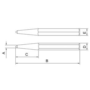 O punção de centro da Tramontina PRO é muito utilizado para fazer marcações em metais, como por exemplo, marcar a posição dos furos para guiar as brocas. Possui durezas diferenciadas nas faces de golpe para garantir segurança e resistência em seu uso. Quem é PRO usa. Orientações Produzido em aço cromo molibdênio temperado.Têmpera por indução na ponta.Acabamento fosfatizado.DIN 7250.Estas ferramentas de impacto têm dureza diferenciada no gume de corte e na face que será golpeada.As ferramentas são submetidas a testes de aplicação para garantir que o processo de fabricação esteja dentro das especificações.A camada de fosfato mais a deposição de óleo aplicado na superfície das peças, garantem uma proteção excelente contra a corrosão.A variedade de tamanhos e formas de punções e talhadeiras, sempre assegura a ferramenta certa para cada aplicação.Ferramenta mecânica utilizada para fazer marcações em metais, como por exemplo, marcar furos para guiar as brocas.As ferramentas são produzidas e testadas conforme normas específicas. Observações Use óculos, luvas e outros equipamentos de proteção individual (EPIs) de acordo com a tarefa a ser executada. Utilize punções, saca-pinos e talhadeiras em superfícies ou componentes de dureza inferior a suas arestas de corte ou pontas. Descarte qualquer punção, saca-pino e talhadeira que apresente rachaduras, sinais de uso excessivo ou que tenham a face de impacto deformada. Golpeie as punções, saca-pinos e talhadeiras perpendicularmente às faces de impacto. Não use punções de centro para sacar pinos. Respeite as medidas e ângulos originais ao refazer a ponta dos punções ou gume de corte das talhadeiras. Armazene em local limpo e seco. Características Gerais EAN13 7891114031409 DUN14 17891114031406 NCM 8205.59.00 Peso Líquido 0,1200 kg. Peso Bruto 0,1200 kg. Metragem 0,000208 m³. Dimensões Embalagem (Compr. X Larg. X Alt.) 130x 80x 20 mm. Dimensões Produto (Compr. X Larg. X Alt.) 120x 15x 15 mm. Dimensão Extra A 5,0 mm. Dimensão Extra B 120,0 mm. Dimensão Extra C 50,0 mm. Dimensão Extra D 14,5 mm. Dimensão Extra E 12,7 mm.