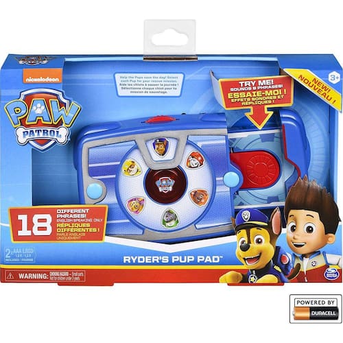 PRODUTO INTERNACIONAL. Seu pequeno fã de Paw Patrol vai adorar o Pup Pad de Ryder! Com 18 sons e frases diferentes, o Pup Pad de Ryder traz a emoção de ajudar a Patrulha toda para a sua casa. Escolha entre Chase, Marshall, Rubble, Skye, Rocky ou Zuma na discagem no topo e ouça frases únicas vindas diretamente do programa.