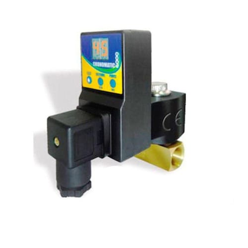 Solenóide acionada sob comando de um temporizador eletrônico.