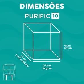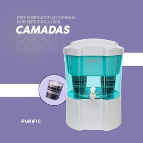 O purificador de água purific 10 da purific é muito versátil, ideal para uso doméstico e comercial para um consumo de água de médio fluxo. Tenha mais conforto e segurança consumindo uma água alcalina de qualidade com um purificador 100% fabricado no brasil. Este purificador acompanha dois refis do modelo purific camadas troca fácil, que possui sete camadas de proteção e realiza a purificação da água, com as etapas de pré-filtragem, filtragem e o tratamento. Cada refil/elemento filtrante possui capacidade para purificar 1200 litros de água, trazendo inúmeros benefícios para sua saúde. Possui placa de imãs e infravermelho longo, que atuam na organização das moléculas da água, deixando a água muito mais leve e de fácil absorção pelo organismo; Regula o ph da água; Reduz cloro; Reduz de vírus e bactérias, no mínimo 99,99%; Retém partículas; Reduz algas; Reduz fármacos: exemplos: mínimo 80%, mínimo 67%, metformina mínimo 95%, estradiol mínimo 75%, xenoestrogênio mínimo 78%, entre outros ; Reduz metais pesados: exemplos: cobre mínimo 48%, ferro mínimo 94%, cádmio mínimo 91%, níquel mínimo 98%, Cinza mínimo 71%, sulfato de alumínio mínimo 71%, entre outros ; Reduz : exemplos: atrazina mínimo 75%, diuron mínimo 80%, glifosato mínimo 77%, hexazinona mínimo 81%, 2,4 d mínimo 81% , fipronil mínimo 79%, carbendazin mínimo 81%, entre outros ; Reduz trihalometanos, no mínimo 81%. Metodologia: standard methods for the examination of water and wastewater, 2005. Legislações: portaria nº 888 de maio de 2022 - ministério da saúde. Todos os testes e emissão de laudos foram realizados pela uem universidade estadual de maringá Ficha técnica: Capacidade: 10 litros total, entre água a ser purificada e água já purificada . Refil/elemento filtrante: acompanha 2 dois refil/elemento filtrante modelo camadas troca fácil. Capacidade de purificação: 1.200 litros de água 600 litros para cada refil/elemento filtrante . Abastecimento: manual, mas pode ser conectado à rede hidráulica utilizando o kit hidráulico purific não incluso com o produto . Para mais informações consulte o manual do produto. Dimensões do aparelho purific 10 de torneira: 41 cm de altura x 27 cm de largura x 27 cm de profundidade Dimensões da embalagem: 45 cm de altura x 30 cm de largura x 31 cm de profundidade Peso: 3,8 quilos - pode ser utilizado com rede hidráulica com o kit hidráulico purific. - produto livre de bisfenol bpa e pp-bip-f - metodologia utilizada: cromatografia gasosa acoplada à espectrometria de massas adaptada da nbr 15176:2004.