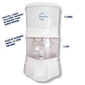 Com medidas de largura de 24cm, profundidade de 32cm e altura de 47cm, esse purificador possui um fluxo de filtragem de 1,1 L/H e uma capacidade total de 13L, ideal para atender as necessidades diárias de consumo de água.