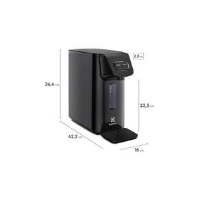 Purificador de água com design elegante na cor preta, oferece água nas temperaturas fria, natural e gelada. Tecnologia de refrigeração por placa eletrônica. Sistema de filtragem com PP e carvão ativado com íons de prata. Retenção de partículas classe C. LED indicativo para troca de refil. Compatível com refis FWEBR02. Bivolt.Lâmpada piloto