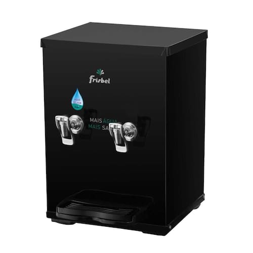 Reservatório de 10 litros, Gelado e natural, Indicação: Industrial, comercial e residencial, Termostato com 7 níveis de temperatura, Revestimento externo em inox 430, Isolamento em EPS, Gás R134A ecológico, Compressor 1/12 Hp, Aparador removível para higienização, Base injetada, Acompanha filtro completo, Torneira de plástico (empurra copo).Função retrolavagem