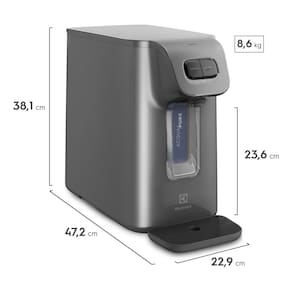Eleve a qualidade da agua em sua casa com o Purificador de Agua PC01X da Electrolux, um equipamento pensado para oferecer praticidade e eficiencia no seu dia a dia. Com um design moderno na cor grafite, este purificador combina perfeitamente com qualquer ambiente, garantindo agua sempre fresca e saborosa. Com dimensoes de 38,1 cm de altura, 22,9 cm de largura e 47,2 cm de profundidade, ele se adapta facilmente a diferentes espacos, sem comprometer a decoracao do seu lar. O Purificador de Agua PC01X oferece agua em tres temperaturas: fria, natural e gelada, atendendo as suas preferencias em qualquer estacao do ano. Equipado com um sistema de refrigeracao por compressor, ele possui uma capacidade de refrigeracao de 1,20 litros por hora, ideal para manter a agua na temperatura desejada por mais tempo. O consumo de energia e eficiente, com apenas 5,13 kWh por mes, proporcionando economia e sustentabilidade. O sistema de filtracao avancado utiliza PP e carvao ativado com ions de prata, garantindo a reducao do cloro livre e a retencao de particulas de classe C, apesar de nao possuir eficiencia bacteriologica. O modelo e compativel com refis FWEBR02, e um LED indicativo sinaliza o momento ideal para a troca do refil, que possui uma vida util de 3000 litros ou 6 meses. Com um peso de 8,65 kg, e robusto e estavel, e a embalagem inclui o purificador e um manual de instrucoes para facilitar a instalacao e o uso. A garantia do fabricante e de 12 meses, assegurando qualidade e confiabilidade. Ideal para quem busca praticidade e qualidade na hora de consumir agua, o Purificador de Agua PC01X da Electrolux e a escolha perfeita para sua casa ou escritorio. Resumo das caracteristicas e especificacoes: Produto: Purificador de Agua. Temperatura da Agua: Fria, Natural e Gelada. Tensao Eletrica: 127V (110V). Refis Compativeis: FWEBR02. Sistema de Refrigeracao: Compressor. Capacidade de Refrigeracao: 1,20 L/h. Consumo de Energia: 5,13 kWh/mes. Modo de Filtracao: PP + Carvao Ativado com Ions de Prata. Retencao de Particulas: Classe C. Eficiencia Bacteriologica: Sem Eficiencia. Reducao de Cloro Livre: Com Reducao. LED Indicativo para Troca de Refil: Com LED Indicativo. Vida Util: 3000 litros ou 6 meses. Cor: Grafite. Tonalidade: Cinza. Modelo: PC01X. Marca: Electrolux. Peso do Produto: 8,65 Kg. Altura: 38,10 cm. Largura: 22,90 cm. Profundidade: 47,20 cm. Dimensao: 38,1x22,9x47,2 cm. Contem na Embalagem: Purificador e manual de instrucoes. Garantia do Fabricante: 12 meses.
