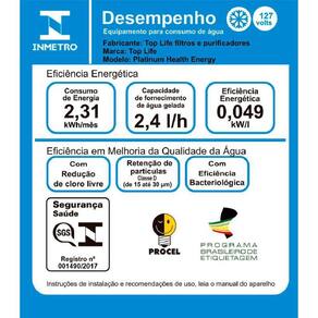 Purificador de água Top Life HeOxi, alcalina e ozonizada, com alta performance, pH alcalino entre 8.5 e 9.5, função de ozonização para higienização de alimentos e objetos.Função retrolavagem