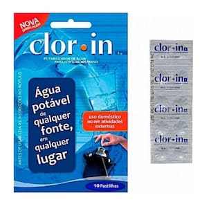 Purificador de Água Clorin 10 Pastilhas!!Ideal para garantir a qualidade da água consumida e expulsar bactérias que podem atrair doenças!ESPECIFICAÇÕES:-Pode ser utilizado em uso doméstico e em outras atividades externas;-Contém 10 pastilhas;-Uma pastilha é capaz de purificar de 500ml a 1 Litro de água;-Indicado aguardar 15 minutos antes de consumir;-Possui teor ativo de cloro de 1%;-Não é prejudicial a saúde;-Ideal para purificar águas de rios, riachos, chuva e poços;-Não altera odor, sabor ou cor da água a ser consumida;-Produto aprovado pela Organização Mundial da Saúde;ADQUIRA JÁ O SEU!