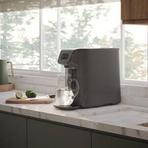 Design moderno e elegante na cor grafite, se adapta a qualquer ambiente. Possui água gelada, natural e quente. Tecnologia com compressor para água gelada rápida e constante. Filtro que remove impurezas, cloro e odores. Reservatório de água gelada e natural. Painel digital intuitivo. Economia de energia. Trava de segurança para crianças.Função retrolavagem