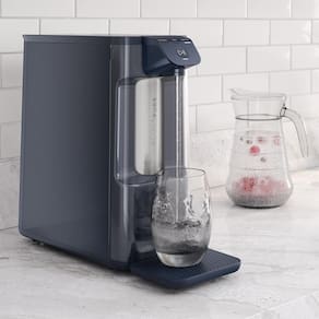 Purificador De Água Electrolux Gelada Fria Natural CompactoO Purificador de água Electrolux - Gelada, Fria e Natural Elétrico Compacto Pure 4x PE12A da Electrolux enche seu copo até 4x mais rápido. Esse modelo possui Tecnologia Acqua Pure: reduz cloro, odores e outras partículas presentes na sua água. Além disso, é eficaz no controle do nível microbiológico Da sua água.O Design do Purificador de água Electrolux é compacto e moderno, podendo ser instalado em bancadas e disponível em 3 cores diferentes para combinar com qualquer ambiente sendo Grafite , Azul e Branco. O painel touch possui iluminação de LED para sinalizar a saturação do filtro e facilitar a escolha dentre as 3 opções de temperatura de água.A troca de refil é fácil e simples, a cada 3.000 litros ou 6 meses de uso. O alerta de troca de filtro sinaliza a hora certa de substituir. O purificador também conta com bandeja removível e pés de borracha antiderrapante, facilitando a limpeza sem comprometer a estabilidade e boa performance. Testado de acordo com a Portaria 394/2014 E ABNT NBR 16098:2012. Testado com a bactéria Pseudomonas aeruginosa conforme ABNT NBR16098:2012Ficha técnica- Material: Metal- Método de filtragem: Carbono- É portátil: Sim- Profundidade: 40- voltagem: bivolt automático- Cor: Grafite- Cor: Azul- Inclui cartucho de substituição: Sim- Largura: 45 CM- Lugar de instalação: Ponto de uso- Com torneira: Não- Substâncias removidas: Cloro- Tipos de montagem: Sobre a pia- Estágios de filtragem: 3- Cor: Branco