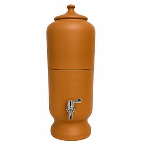 Capacidade: 6 litros (3L superior + 3L inferior) Dimensões: 46 cm altura x 18 cm diâmetro Material: Barro marrom natural (rústico) Incluso: Vela, boia e torneira