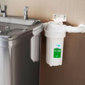 Os purificadores de água FIT 200 possuem sistema de tripla filtração, o que deixa a água livre de partículas como areia, barro, ferrugem, poeiras e outros sedimentos, além de reduzir o gosto e cheiro do cloro. Podem ser instalados sobre ou embaixo da pia, sem prejudicar a estética da cozinha, além de bebedouros, máquinas de café expresso, máquinas de gelo, salões de beleza, restaurantes e lanchonetes. Com alta vazão que proporciona água em temperatura natural para beber, fazer sucos, lavar e cozinhar os alimentos. BENEFÍCIOS DO PRODUTO Aplicado em: restaurantes, indústrias, escolas, escritórios, academias e residências Água limpa sem alterar o design da cozinha Ideal para cozinhar Reforce o sabor de cafés e sucos Qualidade e praticidade Mais saúde com água limpa e cristalina Facilidade de limpeza Qualidade e praticidade Muito mais economia 1 refil = 200 galões de 20 litros de água mineral ou 8000 garrafas pet de 500 ml CARACTERÍSTICAS TÉCNICAS Código: 2000 Vida Útil: 4000 litros Vazão: 60 litros/hora Retenção de Partículas: Classe C 5 a 15 micra Dimensões da Embalagem: 271x125x125 mm Dimensões do Produto: 230x119x119 mm Peso Líquido: 1,010 kg Peso Bruto:1,120 kg Temperatura de Operação:1 a 40 °C Pressão de Operação:29 a 392 kPa 3 a 40 mca Código de Barras:7898931243169 :03 anos Com Redução de Cloro Livre Bivolt Marca: Não Informado