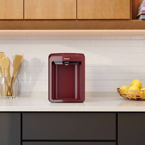 Purificador de água Consul CPB33AV com design moderno, água pura e refrescante, sistema de refrigeração eletrônica, vazão de 120 L/h, LED indicativo para troca de refil, retenção de partículas classe A, eficiência bacteriológica e redução de cloro livre.Função retrolavagem
