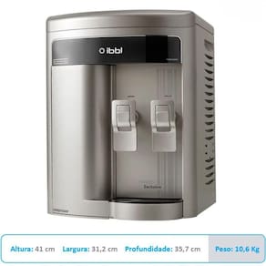 O Purificador de Água IBBL FR600 Exclusive 110V combina filtragem avançada e refrigeração eficiente para uso doméstico. Com compressor de alta performance e vazão de 1,1 L/h de água gelada, garante água pura e sempre na temperatura ideal, ideal para residências e pequenos escritórios.