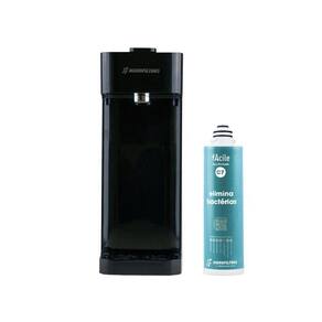 O purificador hidrofiltros facile c7 apresenta um design moderno e compacto, sendo uma excelente solução em purificação de água natural. Composto de abs de alto impacto, possui válvula de cerâmica que evita gotejamento e garante durabilidade de até 200 mil acionamentos. Além disso, conta com acionador de água com proteção antimicrobiana, que repele vírus e bactérias como os da herpes, por exemplo. Disponível em três cores: branco, cinza e preto, ainda pode ser personalizado com um toque mais colorido pelo uso de uma das sete opções do kit colors. É ideal para qualquer ambiente, desde que seja instalado em local com até 1,5 m de distância de um ponto de água, na parede ou sobre a bancada da pia. O purificador hidrofiltros facile c7 é indicado para quem busca um sistema completo de purificação de água em um único produto. Além de reter sedimentos e reduzir o cloro, tem ação capaz de eliminar até 99,9% de contaminações bacteriológicas. Desenvolvido por meio das tecnologias bac® e hpc®. A tecnologia bac® confere eficiência bacteriológica ao produto, ou seja, redução ou eliminação do número de bactérias presentes na água. Esta ação ocorre em virtude da adição de nanopartículas de metais na estrutura do mineral, o que afeta a atividade de organismos vivos pela chamada ação oligodinâmica. Já a tecnologia hpc® é responsável pela redução de cloro livre e matéria orgânica presentes na água, por meio do processo de adsorção. Assim, remove compostos orgânicos, trialometanos, amônia e turbidez, melhorando aspectos como cor, odor e sabor indesejáveis da água.
