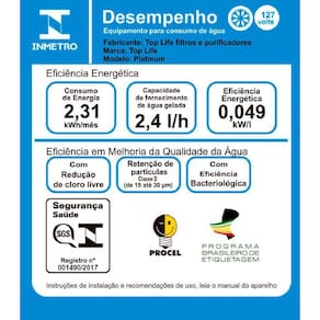 Purificação com ozônio, bactericida, ideal para higienizar alimentos e objetos, reduz impurezas, bactérias, vírus e fungos.Função retrolavagem