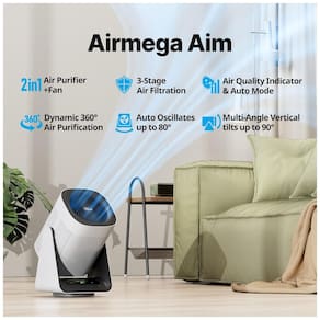 Seu sistema de purificação de ar 360º puxa o ar de todas as direções, maximizando a eficiência da purificação. Além disso, o Airmega Aim também funciona como ventilador, proporcionando ar limpo e fresco em qualquer ambiente.
