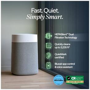 MARCA DE PURIFICADOR AÉREO MAIS PRONTÁVEL NOS EUA linha de purificador de ar no 1 da Blueair A nova série Pure Max da família azul com nosso desempenho HEPASilent proprietário agora ainda melhor com até 83 limpeza mais rápida e 50 menos ruído Vamos limpar o quarto de calibre marca silenciosa certificada 23 53dB Limpa a sala extra grande de 58 metros quadrados em cerca de 12,5 minutos ou até 141 metros quadrados de espaço XL em 30 minutos, em alta Vamos limpar o ar mais rápido a tecnologia de filtragem dupla HEPASilent fornece mais ar limpo mais rapidamente e usa menos ruído e energia do que a filtragem HEPA sozinha Vamos limpar o ar melhor remove pelo menos 99,97 das pequenas partículas transportadas pelo ar, como vírus, e fumam até 0,1 mícrons, e captura pêlos, pólen, alérgenos de mofo e poeira filtro de carbono retém odores domésticos leves de fumar, animais de estimação e cozinhar Vamos limpar o aparelho mais inteligente aplicativo Smart Air Purifier ativado e controle de voz disponível Os recursos incluem Clean Air ETA, monitoramento de filtro RealTrack e Welcome Home LIMPE O EASIER DO AR Visor intuitivo de LED, sensor de poluição em tempo real PM1, PM2.5 e PM10 com AQI de 5 cores e design simples de dois botões facilitam Controle as velocidades do ventilador 1, Modo 2, 3, 4 ou noite, modo automático ou ajuste os níveis de luz e bloqueio infantil.