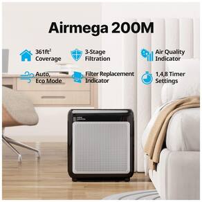 O Coway Airmega 200M é um purificador de ar altamente eficiente, equipado com um sistema de filtragem de quatro estágios que inclui pré-filtro, filtro de odorização, filtro HEPA verdadeiro e dispositivo bipolar. Ele reduz 99,999% das partículas de até 0,01 mícron, incluindo pólen e outros alérgenos, além de eliminar 99% dos compostos orgânicos voláteis e odores.