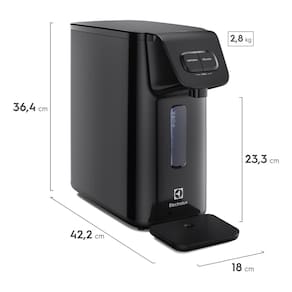 Experimente a pureza e a conveniencia com o Purificador de Agua Electrolux PE15P. Com um design elegante na cor preta, este purificador se integra perfeitamente a qualquer ambiente, oferecendo agua nas temperaturas fria, natural e gelada. A tecnologia de refrigeracao por placa eletronica garante eficiencia e praticidade, enquanto o sistema de filtracao com PP e carvao ativado com ions de prata proporciona uma reducao eficaz do cloro livre, garantindo agua de qualidade para voce e sua familia. A retencao de particulas classe C assegura que as impurezas sejam filtradas, embora o produto nao tenha eficiencia bacteriologica. O consumo de energia e otimizado, com apenas 5,50 kWh/mes, e a capacidade de refrigeracao e de 0,22 L/h, ideal para atender as necessidades diarias sem desperdicio. O LED indicativo para troca de refil e um diferencial que facilita a manutencao, avisando quando e hora de substituir o refil, que tem uma vida util de 3000 litros ou 6 meses. Compativel com refis FWEBR02, este purificador e bivolt, garantindo versatilidade e facilidade de instalacao em qualquer local. Com dimensoes compactas de 36x17,8x42,2 cm e pesando apenas 2,80 kg, o Electrolux PE15P e facil de manusear e instalar. A embalagem inclui o purificador e um manual de garantia, com cobertura de 12 meses pelo fabricante. Este purificador e a escolha ideal para quem busca praticidade e eficiencia no dia a dia, sem abrir mao da qualidade e do design sofisticado. Resumo das caracteristicas e especificacoes: Produto: Purificador de Agua. Temperatura da Agua: Fria, Natural e Gelada. Tensao Eletrica: Bivolt. Refis Compativeis: FWEBR02. Sistema de Refrigeracao: Placa Eletronica. Capacidade de Refrigeracao: 0,22 L/h. Consumo de Energia: 5,50 kWh/mes. Modo de Filtracao: PP + Carvao Ativado com Ions de Prata. Retencao de Particulas: Classe C. Eficiencia Bacteriologica: sem Eficiencia. Reducao de Cloro Livre: com Reducao. LED Indicativo para Troca de Refil: com LED Indicativo. Vida Util: 3000 litros ou 6 meses. Cor: Preto. Tonalidade: Preto. Modelo: PE15P. Marca: Electrolux. Peso do Produto: 2,80 Kg. Altura: 36,00 cm. Largura: 17,80 cm. Profundidade: 42,20 cm. Dimensao: 36x17,8x42,2 cm. Contem na Embalagem: Purificador, manual de garantia. Garantia do Fabricante: 12 meses.