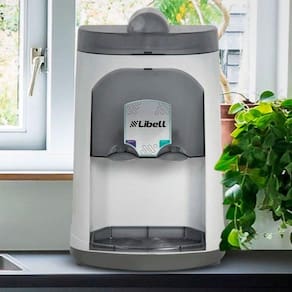 Torneiras em plastico ABS de alta resistencia, sendo uma para agua natural e outra para agua gelada. Ambas simples de desmontar e trocar