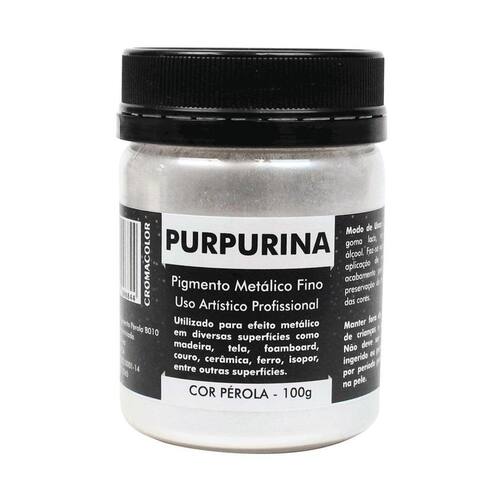 Purpurina Cromacolor é um pigmento utilizado para efeitos metálicos em diversas superfícies como madeira, tela de pintura, gesso, cerâmica, foam board, couro, isopor entre outras superfícies. Também utilizada na recuperação de peças com efeito metálico ou pátina.