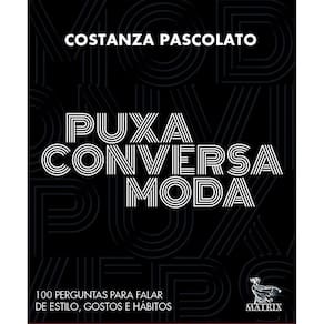 Título do livro : Puxa conversa moda Subtítulo do livro : 100 perguntas para falar de estilo, gostos e hábitos Autor : Pascolato, Costanza Idioma : Português Editora do livro : Editora Urbana Ltda Ano de publicação : 2022 Quantidade de páginas : 100 Altura : 100 mm Largura : 80 mm Peso : 180 g Data de publicação : 05-05-2022 Gênero do livro : Artes e Cultura