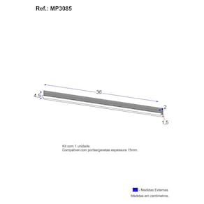 Dimensões do produto: Altura: 4,5cm | Largura: 36cm | Profundidade: 2cm * Você pode consultar as medidas detalhadas na imagem técnica do produto. * Tamanho indicado para os parafusos: 3,5x12mm * Quantidade total necessária de parafusos: 3