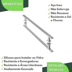Puxador Aço Inox Escovado para Porta de Vidro 50cm M.S