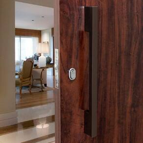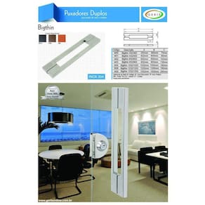 Puxador big thin 432/400mm preto Puxador tipo alça dupla em aço inox 304, disponível nos acabamentos polido ou escovado e também pintados nas cores preta, corten ou cobre. Puxador compatível com portas de vidro ou de madeira.